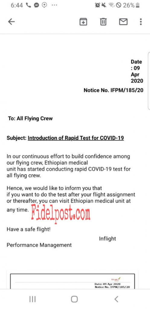 አየር መንገድ ለበረራ ሰራተኞቹ” ፈጣን የኮቪዲ19 ምርመራ” ጀምሬያለው አለ