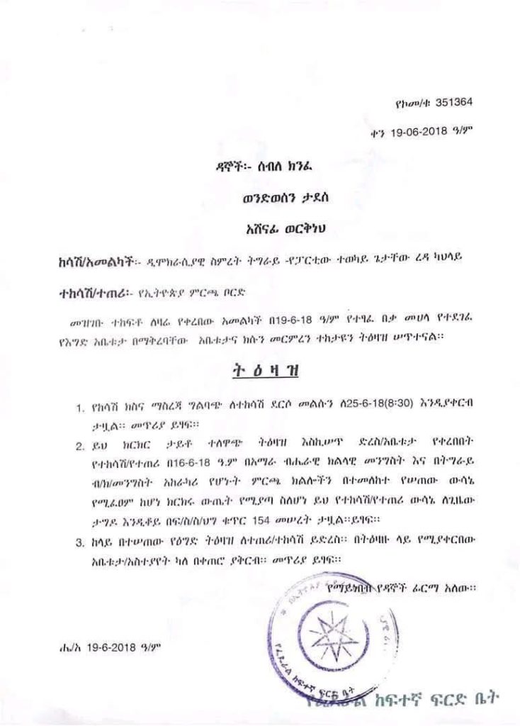 A federal court has issued an injunction suspending the decision to conduct parliamentary elections in the sensitive and disputed Ethiopian districts of Raya and Wolkait.